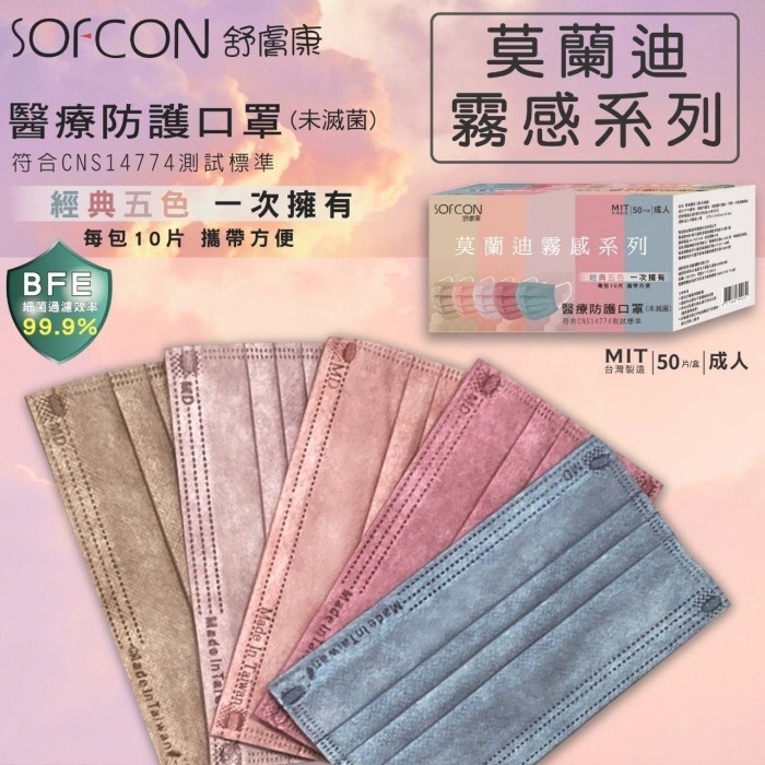商品名稱 :舒膚康 成人平面醫用口罩(未滅菌)-莫蘭迪霧感組
